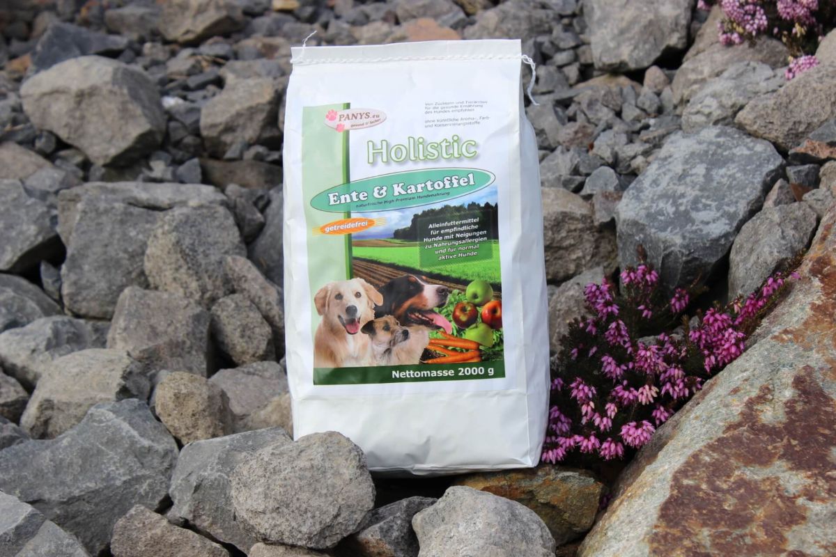 Kartoffelflocken (40%) Entenprotein (25,0 %) Rübentrockenschnitzel Geflügelfett Kartoffelstärke (10,0 %) Volleipulver Hefe Lachsöl (1,0 %) Geflügelleber hydrolisiert Kräutermischung aus: (Petersilie, Rosmarin, Brennessel, Kamille, Salbei, Thymian, Koriander, Löwenzahn, Süßholz), Inulin (Zichorie) (0,10 %) |